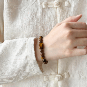 Natural Chicken-wing Wood and Tiger’s Eye Bracelet