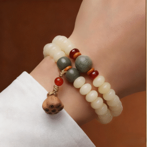 Discover the serene beauty of our double-wrap bracelet, crafted from genuine White Bodhi Seeds (the fruit of the Corypha palm). Each bead is meticulously polished to a soft, creamy luster, offering a piece that is both a mindful object for contemplation and a stylish statement accessory.